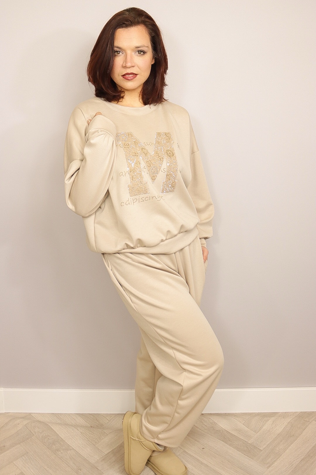 Een heerlijk comfy pak met een zachte stof en fijne stretch, perfect om in te relaxen maar ook leuk genoeg om casual te dragen. Het pak heeft een comfortabele pasvorm en draagt super fijn de hele dag door. Ideaal voor thuis, onderweg of een casual dagje uit. Verkrijgbaar in de kleuren beige, choco en taupe. Draagbaar t/m maat 44/46.