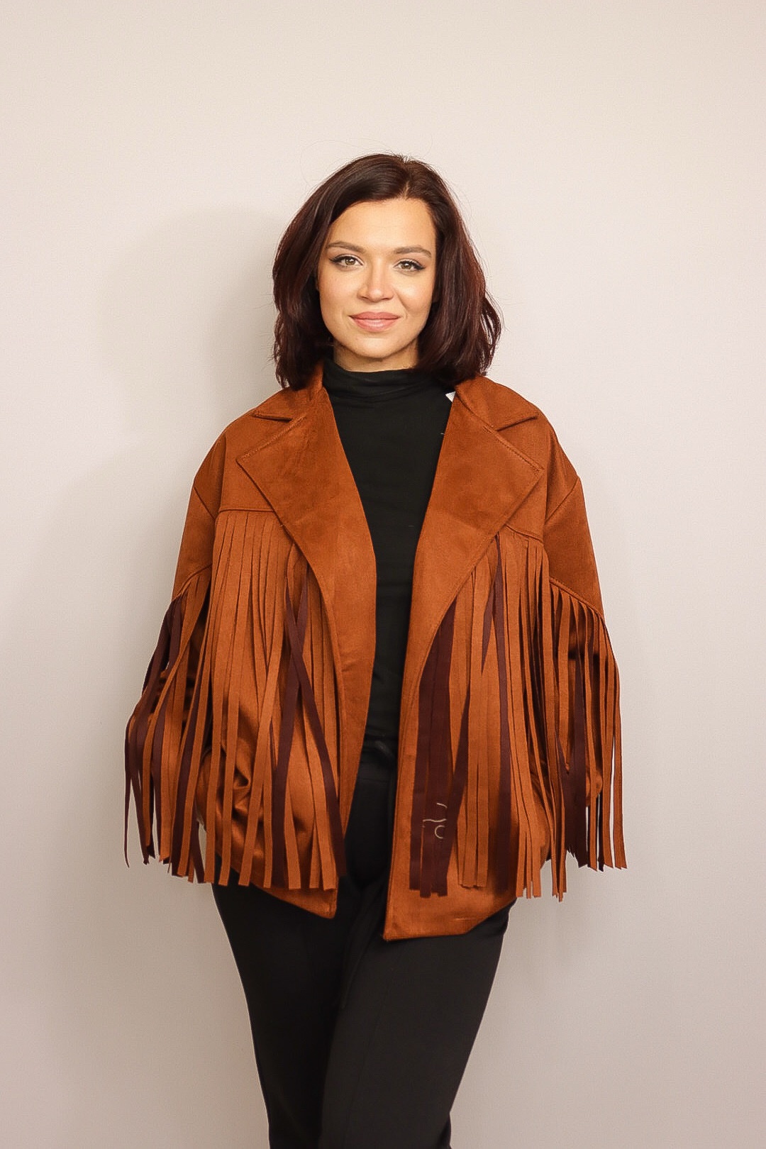 Het Francisca suedine jasje heeft speelse fransjes en een zachte, comfortabele stof. Draagbaar t/m maat 48/50 en verkrijgbaar in choco, beige en camel. Perfect om elke outfit nét dat beetje extra te geven.