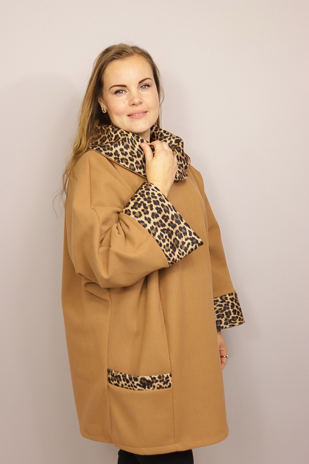 Trendy en comfortabele poncho/jas met stijlvolle knoopsluiting en subtiele leopard details model Nanu. Deze eyecatcher combineert warmte en elegantie in één, perfect om elke outfit een chique touch te geven. Verkrijgbaar in zwart, beige en camel.
