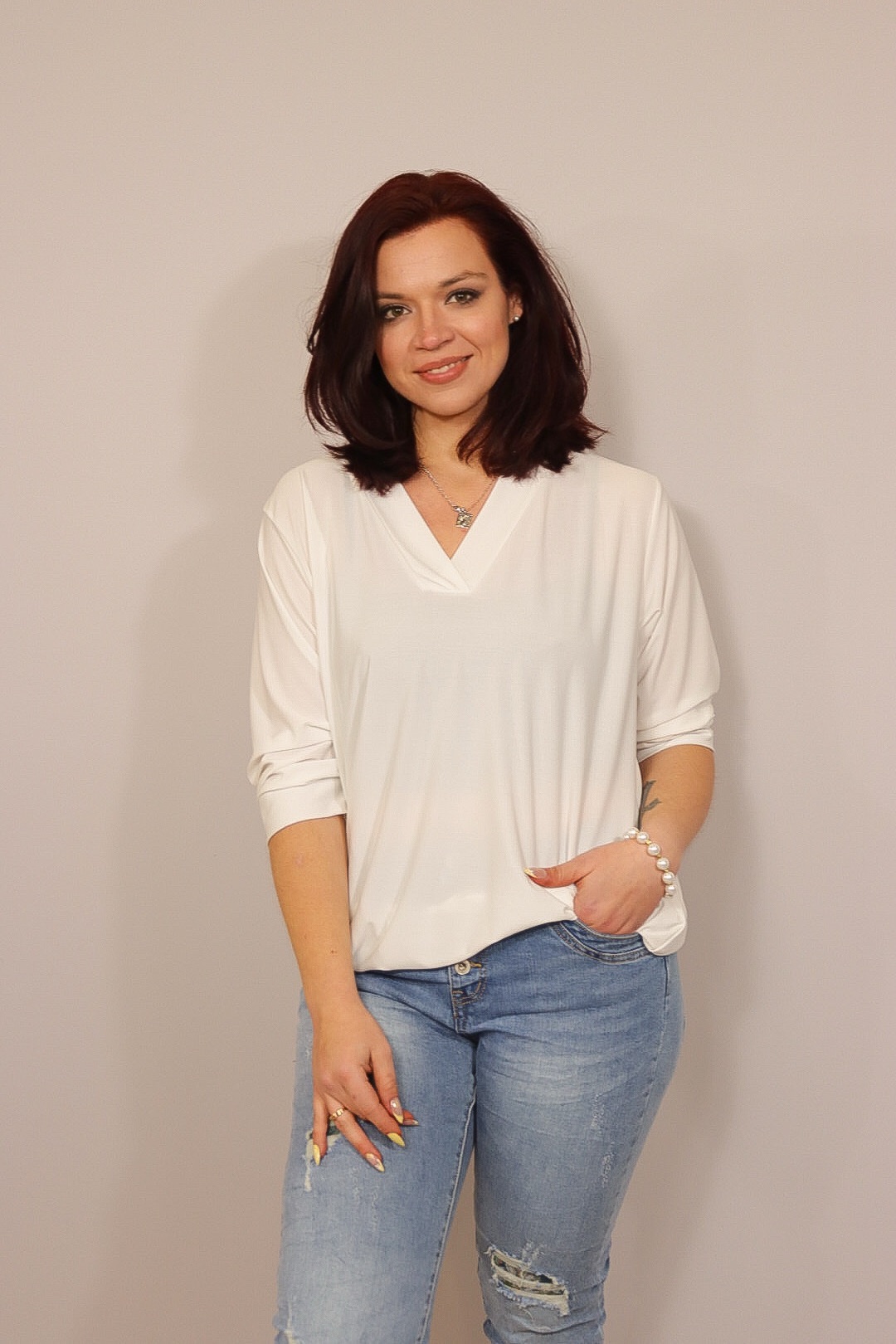 Een comfortabele travel top met een elastische onderboord voor een mooie, licht bloezende pasvorm. De soepele stof voelt zacht aan, kreukt nauwelijks en draagt heerlijk licht – perfect voor zowel casual als een nettere look. Makkelijk te combineren met een travelbroek, jeans of blazer. Verkrijgbaar in roze, wit en blauw. Draagbaar t/m maat 46/48.