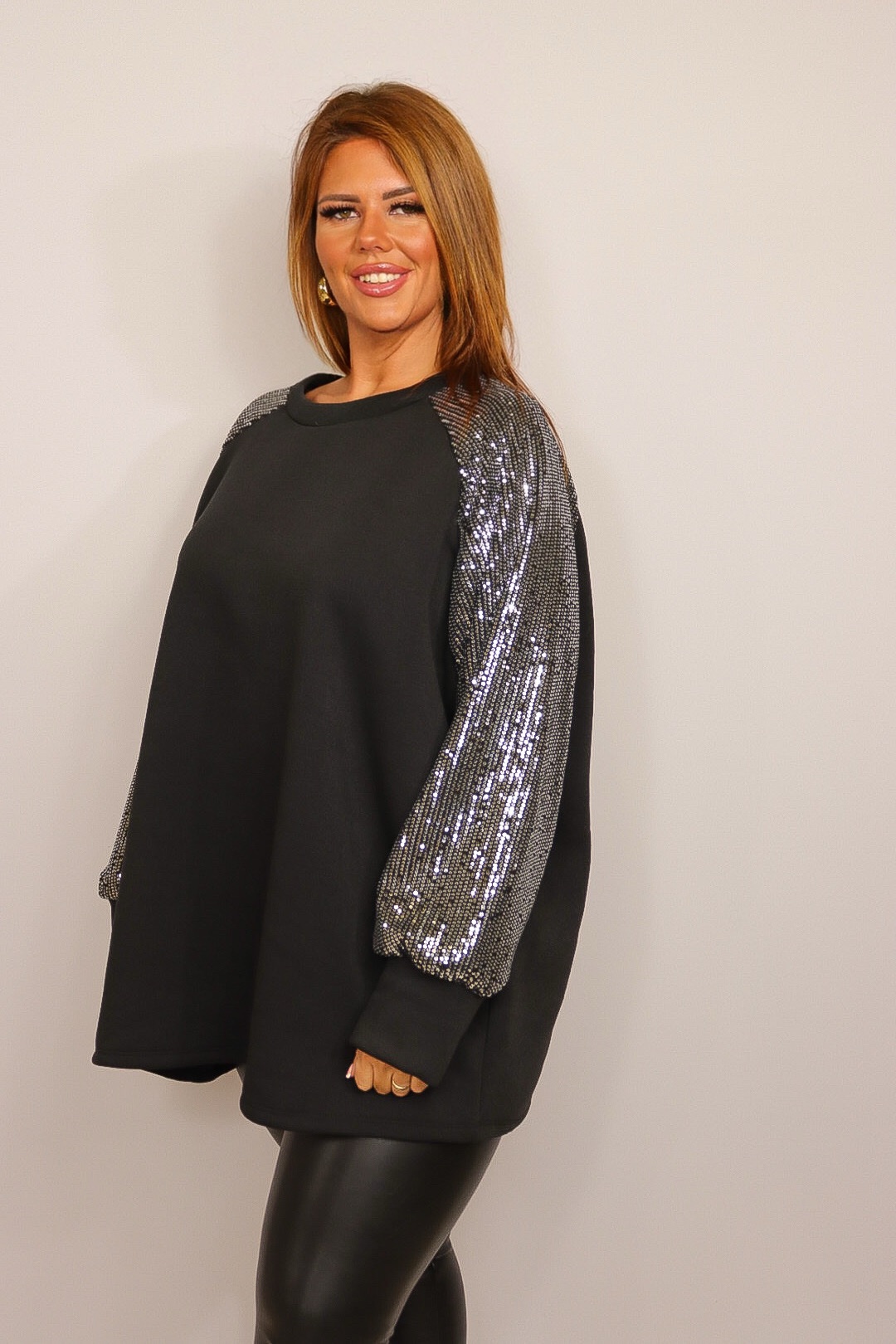 De Trui Party Paillet is een echte party musthave. De opvallende paillettenmouwen geven de trui een chique en feestelijke uitstraling, perfect voor een avondje uit of de feestdagen. Draagbaar t/m maat 50/52 en heerlijk comfortabel.