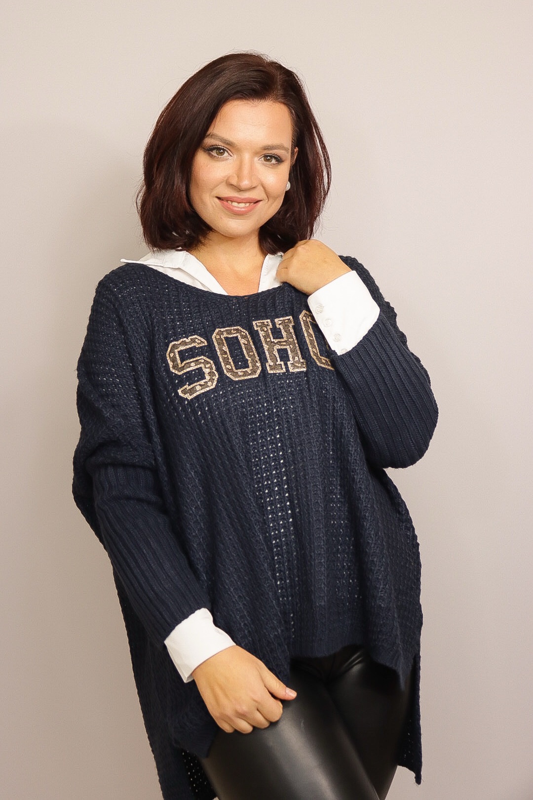 Deze comfortabele en stijlvolle trui heeft een opvallende text print en is perfect voor zowel casual als nette looks. De combinatie van petrol blauw en camel geeft een warme, veelzijdige uitstraling.