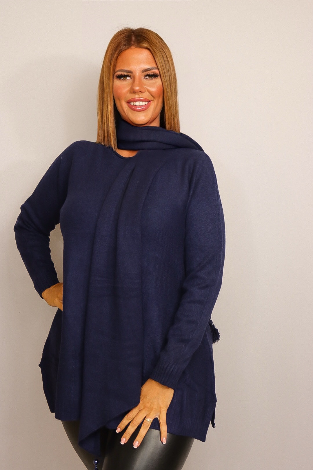Trui Zonia – een stijlvolle 2-delige set met bijpassende sjaal! Heerlijke zachte kwaliteit en prachtig in de kleuren choco, army, navy en crème. Comfortabel, modieus en draagbaar t/m maat 48/50 – perfect voor een cozy maar elegante look!